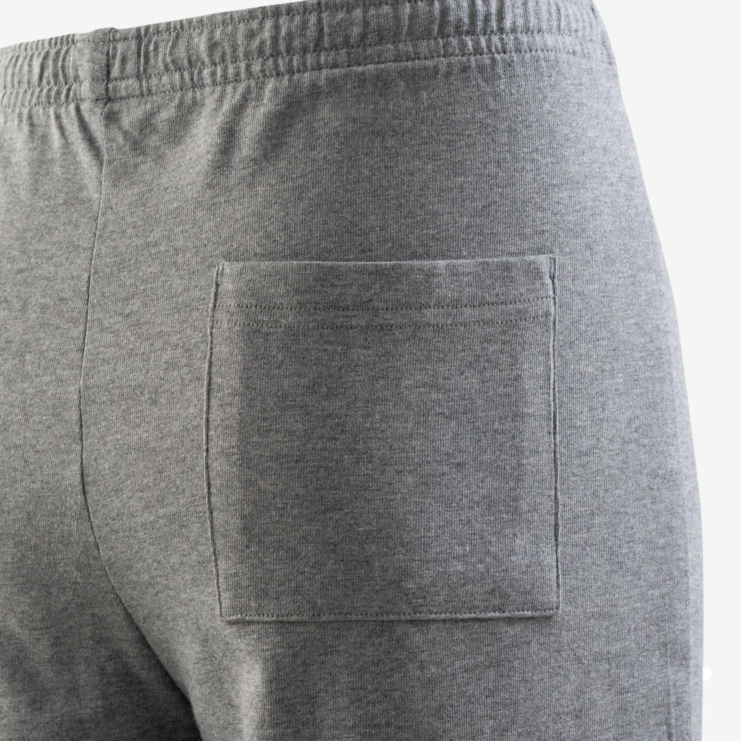 The thread is used to produce the fabric used in these light-gray printed shorts.