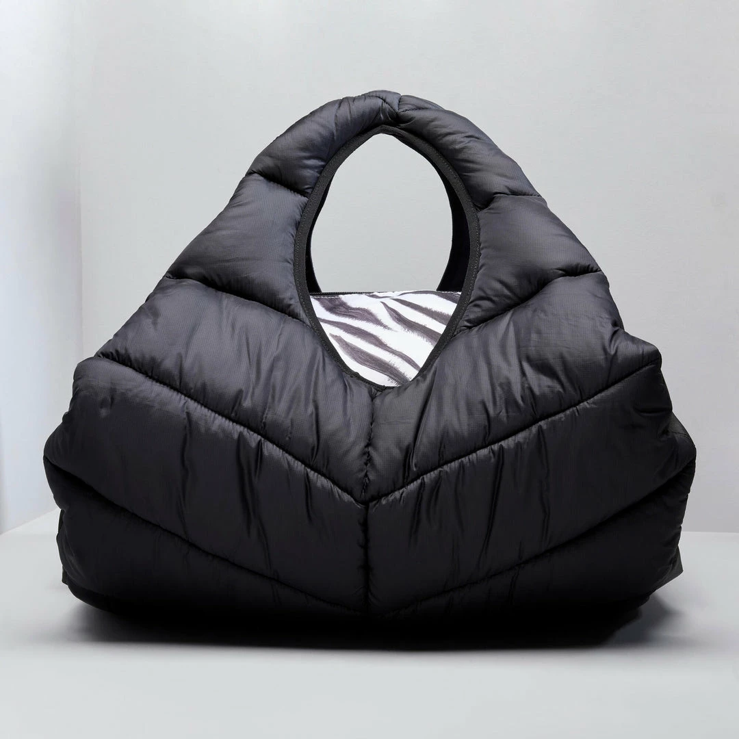 The padded fabric gives it an XL look that’s bang on trend. It’s got loads of details that make it ultra-practical: pockets, a zipper that can be used with a padlock, and an inner removable pouch.