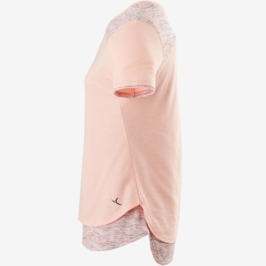 It inspired us to come up with this 2-in-1 T-shirt so that you can slip the longer part into your bottoms (shorts, leggings, etc.) – problem solved!