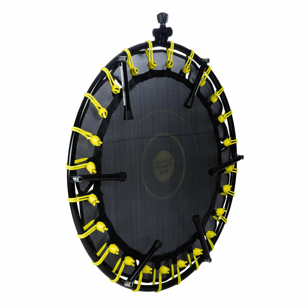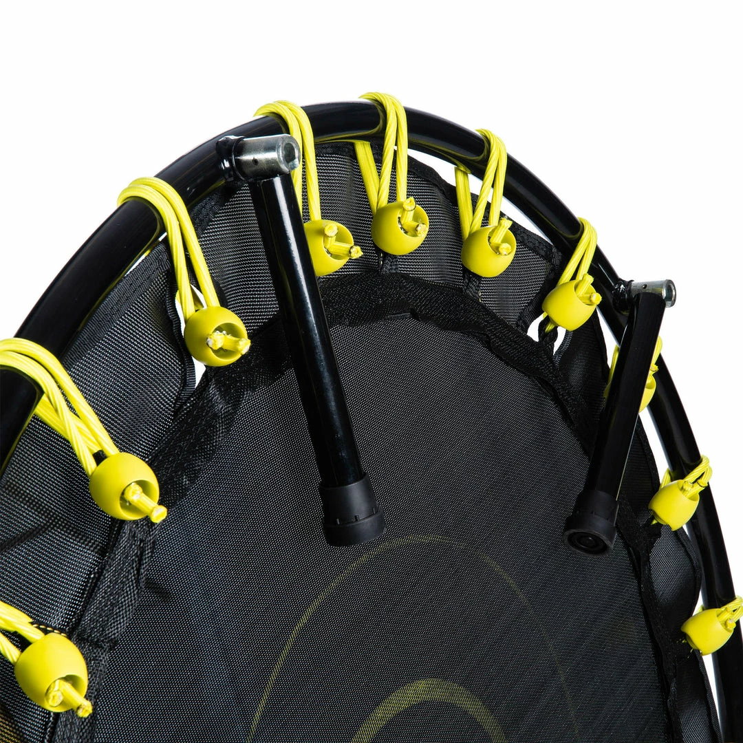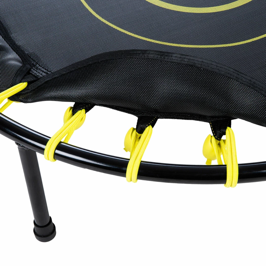 The Fit Trampo 500 trampoline has 24 elastic bands for a dynamic yet silent bounce. To keep you safe as you bounce, the elastic bands are covered with synthetic fabric.