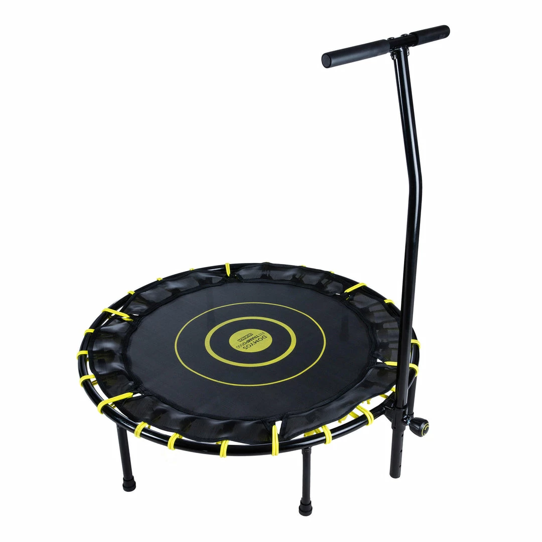 Want to easily exercise at home without taking up too much space? Our Domyos Fitness trampoline 500 is just what you need! Its folding feet make it compact while the front bar makes it stable.