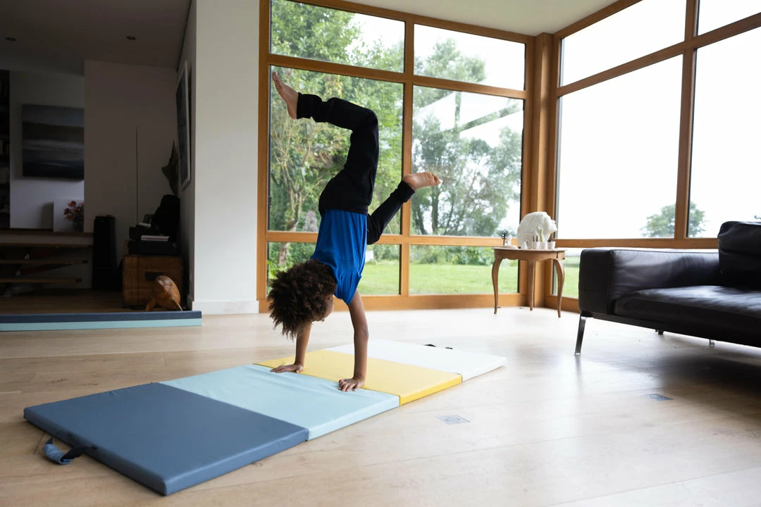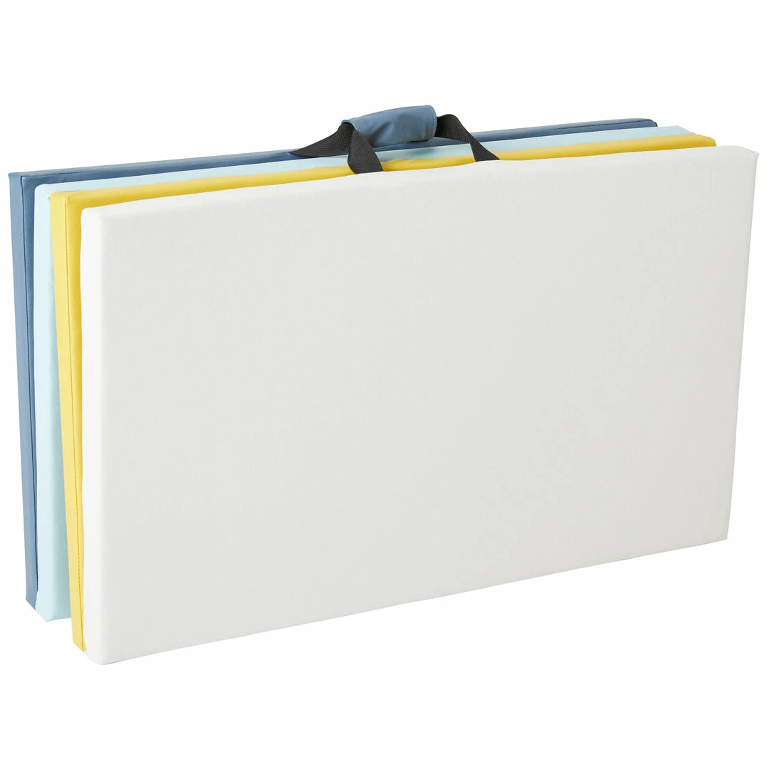 Soft, thick mat for rolling. Unfolds into 4 pieces to instantly create a space to refine motor skills.