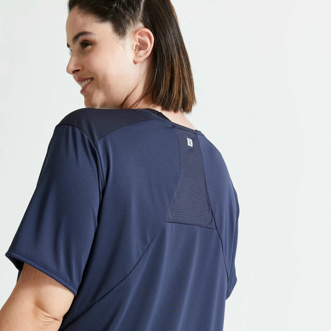 Train with peace of mind, even during the most intense workouts! This T-shirt has been designed to keep your body covered with its slightly longer short sleeves and its curved hem.