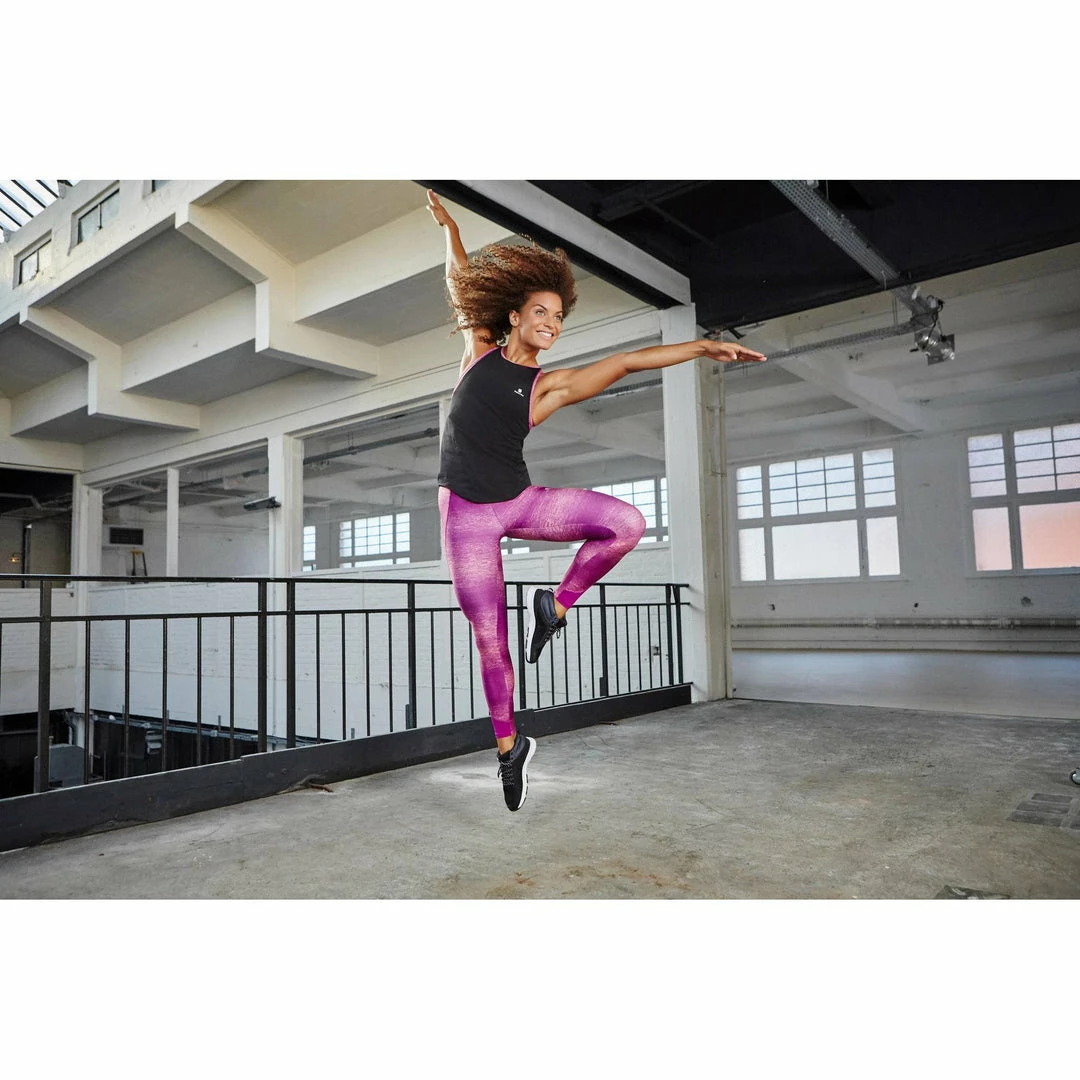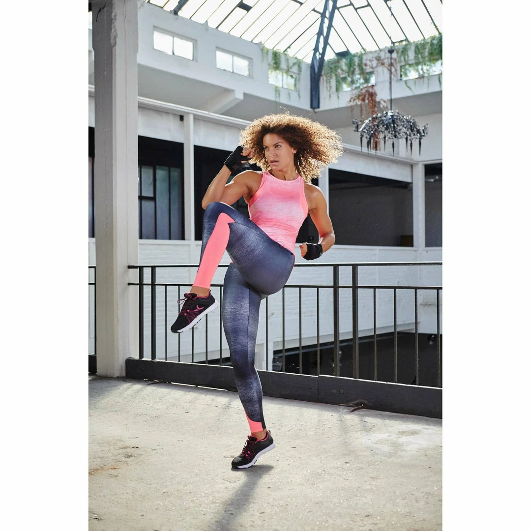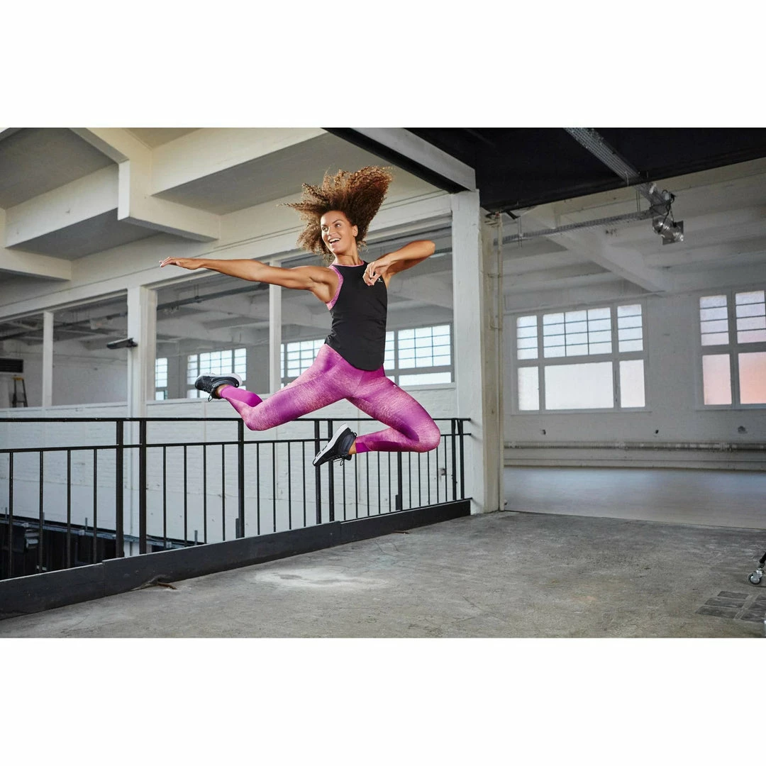The Free Energy elasticated waistband keeps the leggings in place throughout your workout, even when doing squats and other exercises.