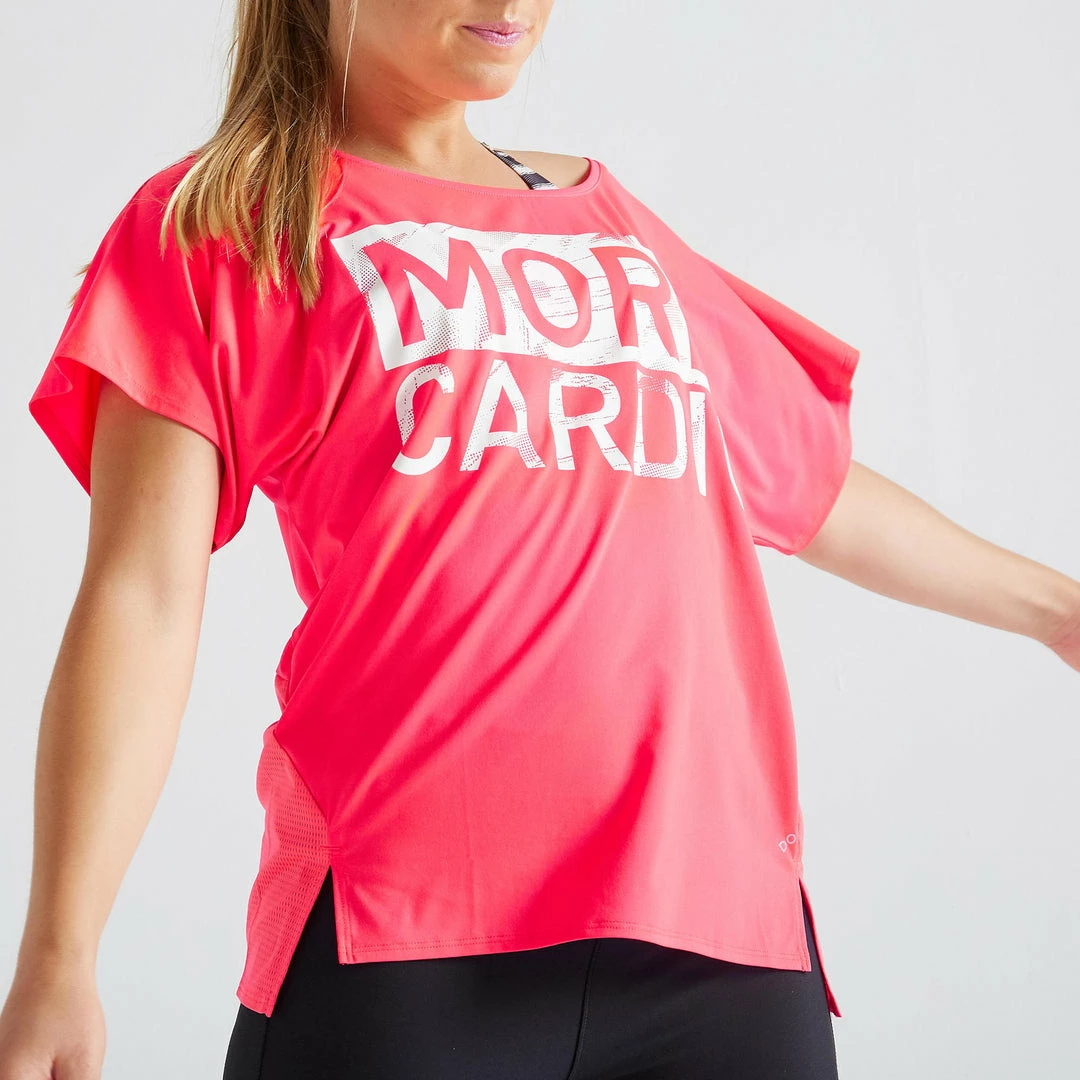This polyester T-shirt is sure to become a fast fitness favorite with its loose fit, mesh back panel and trendy prints!