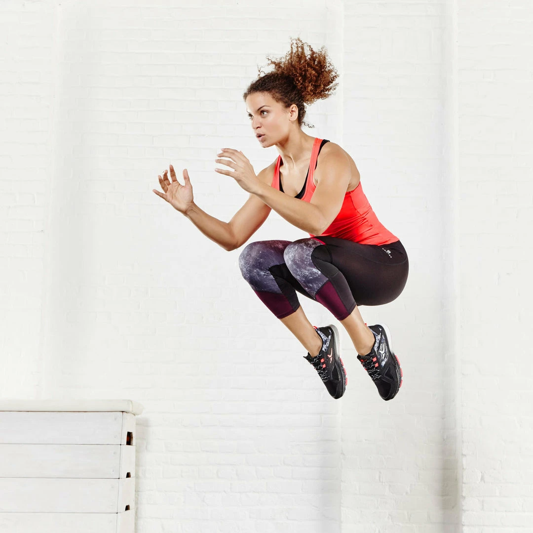 The body-hugging fit stays put at the waist for comfort during squats, lunges and other exercises.