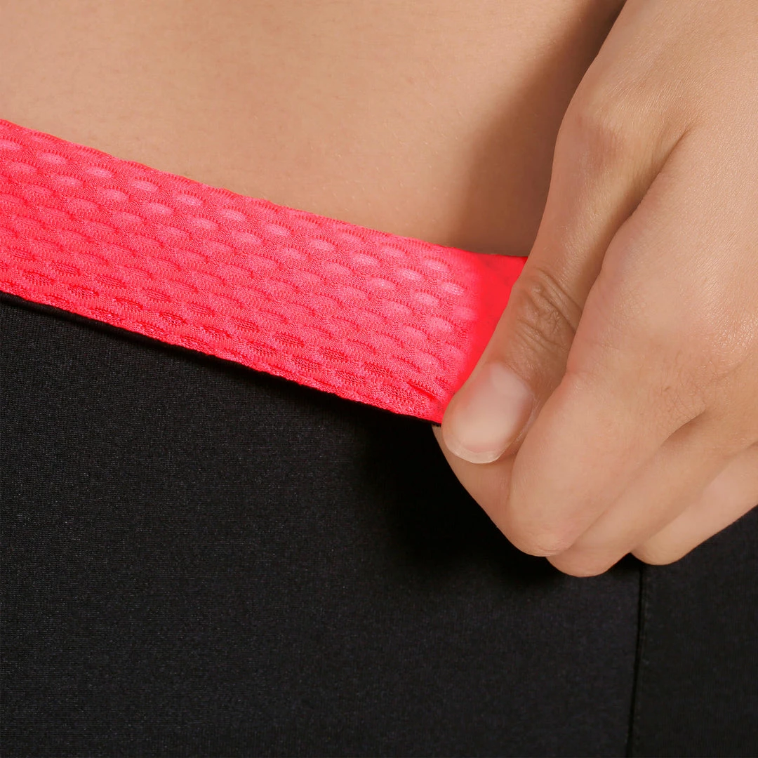 The waistband is lined with breathable fabric to help wick away perspiration and keep you dry during your entire workout!
