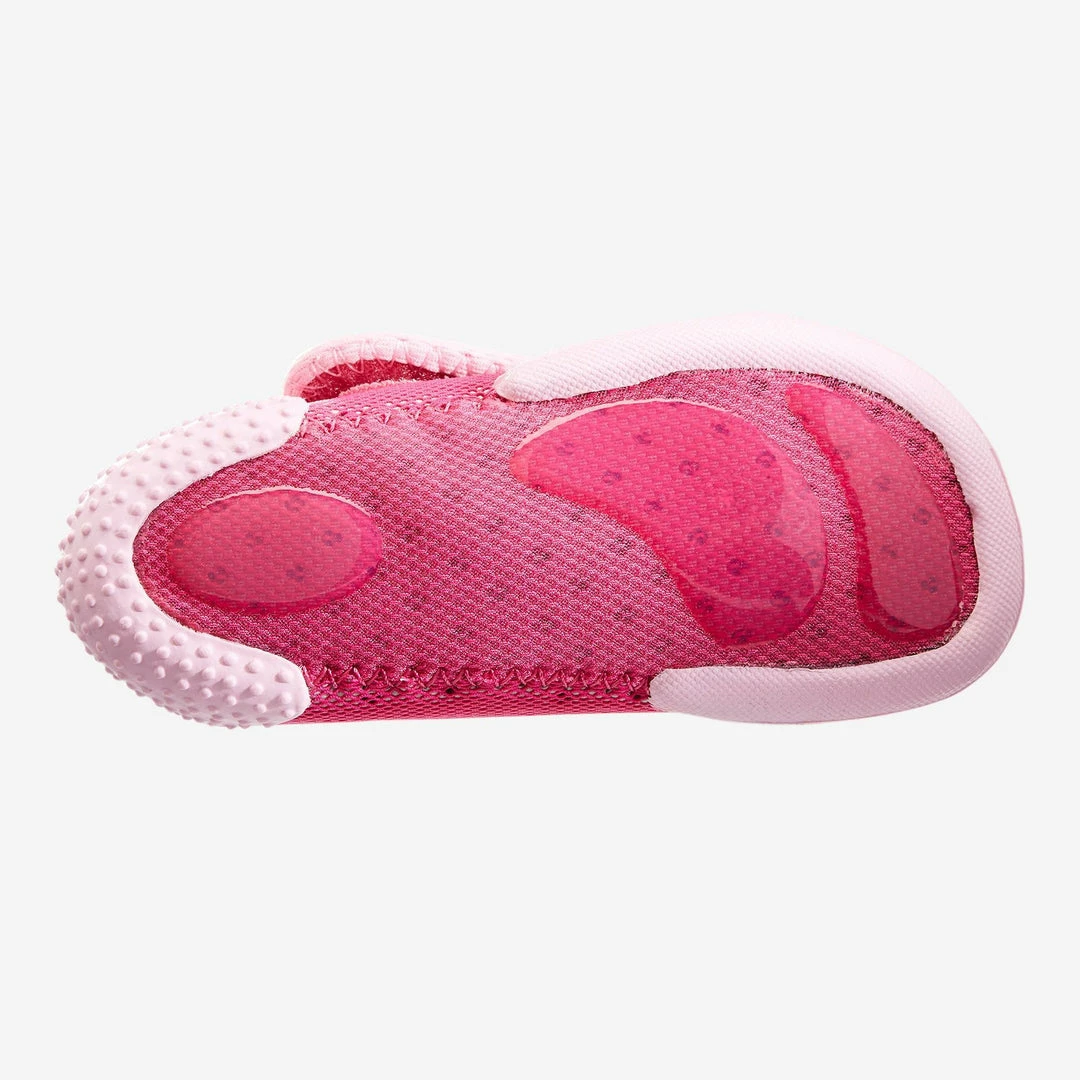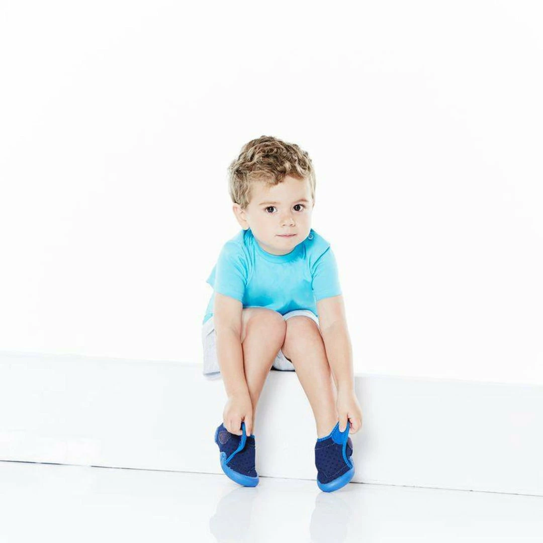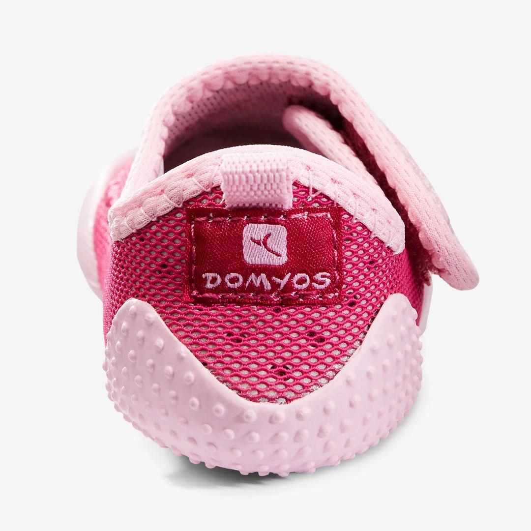 These Domyos baby shoes are meant to be worn indoors. Slip them on without socks to give your little one’s feet maximum contact with the floor. The nerves on the bottom of their feet will “feel” the floor and help them find their balance.