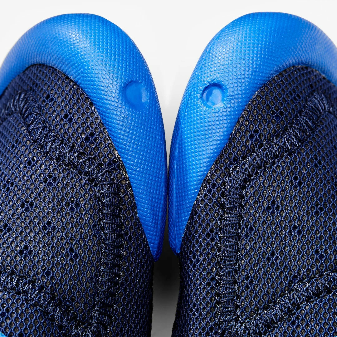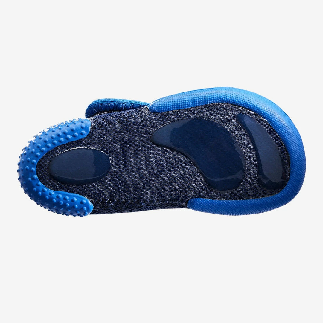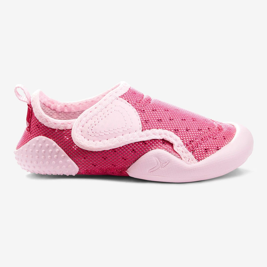 These Domyos baby shoes are meant to be worn indoors. Slip them on without socks to give your little one’s feet maximum contact with the floor. The nerves on the bottom of their feet will “feel” the floor and help them find their balance.