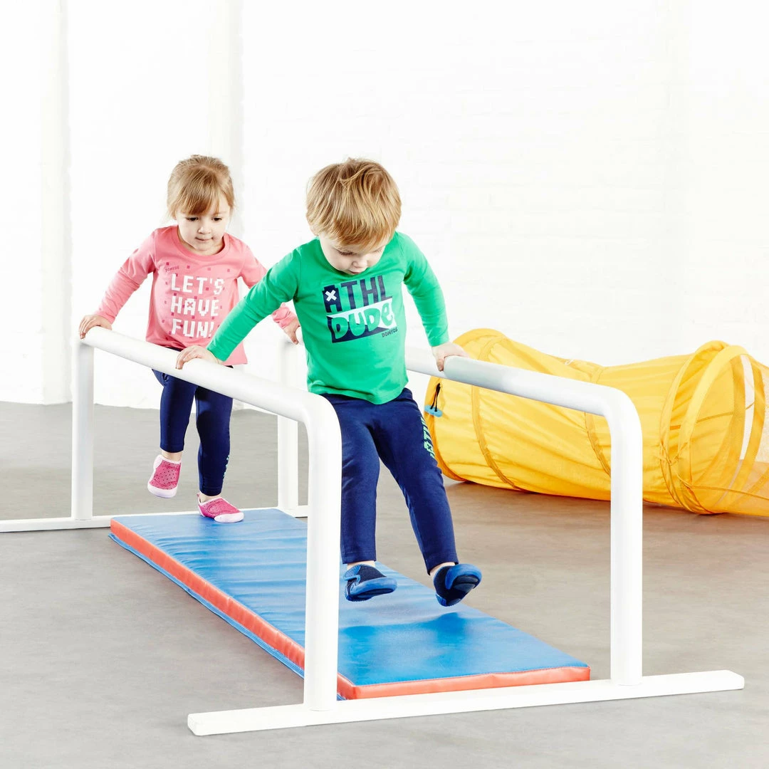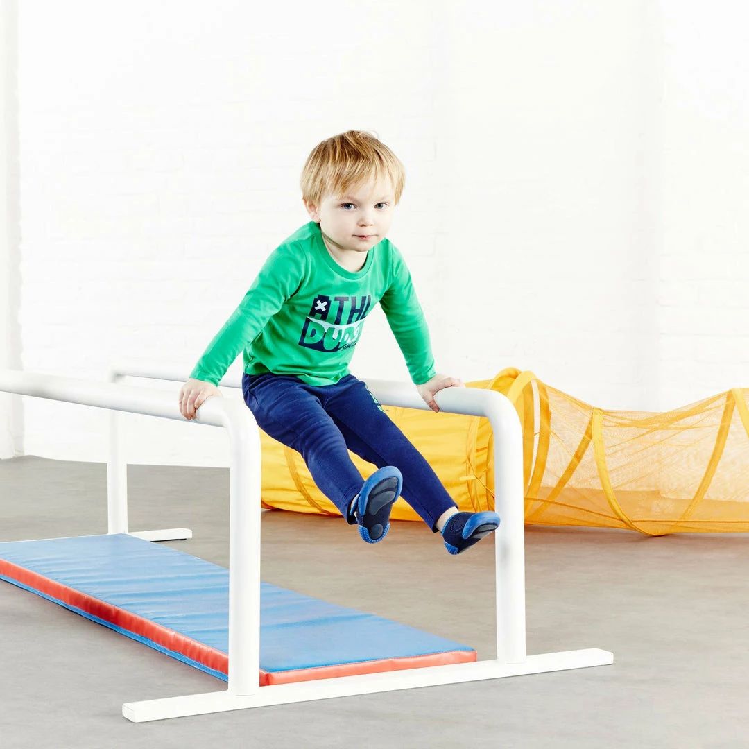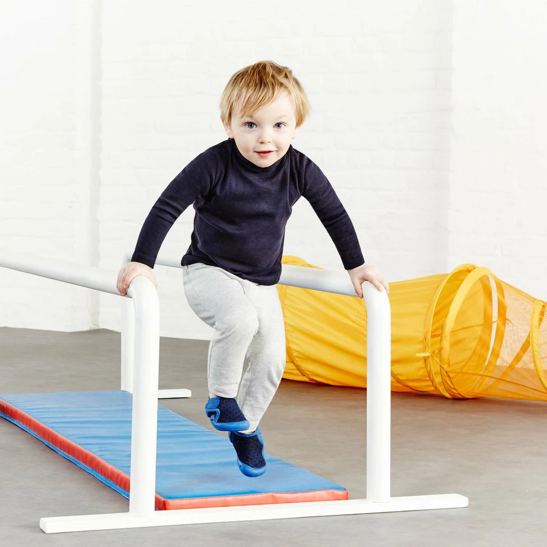 Baby gym encourages psychomotor development in young children, in particular motor skills, coordination and balance. Balancing on gym equipment, jumping, rolling and climbing are all activities that will help your child become more self-sufficient and build their self-confidence.