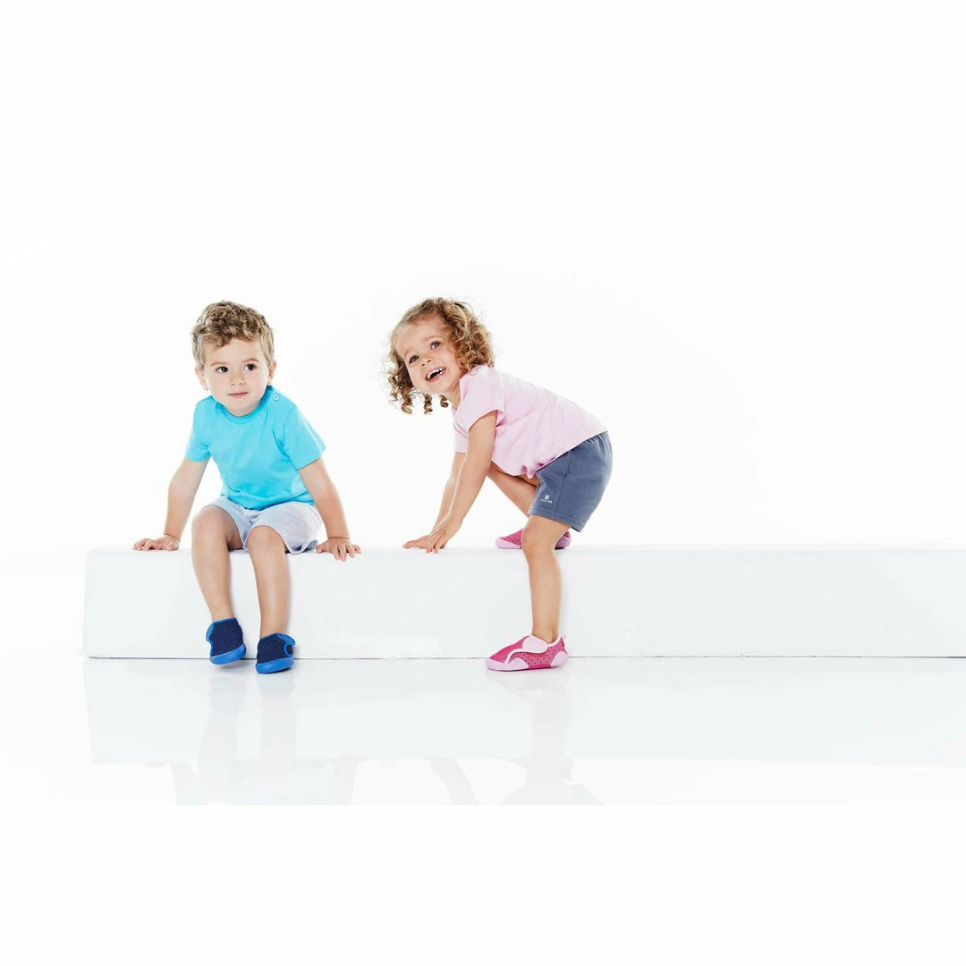 Observations of the behavior of children aged 10 months to 4 years participating in baby gym classes with and without shoes showed that wearing Domyos Babylight shoes helped with the development of their motor skills compared to being barefoot. These included better traction and support for improved balance and coordination as well as better foot protection.