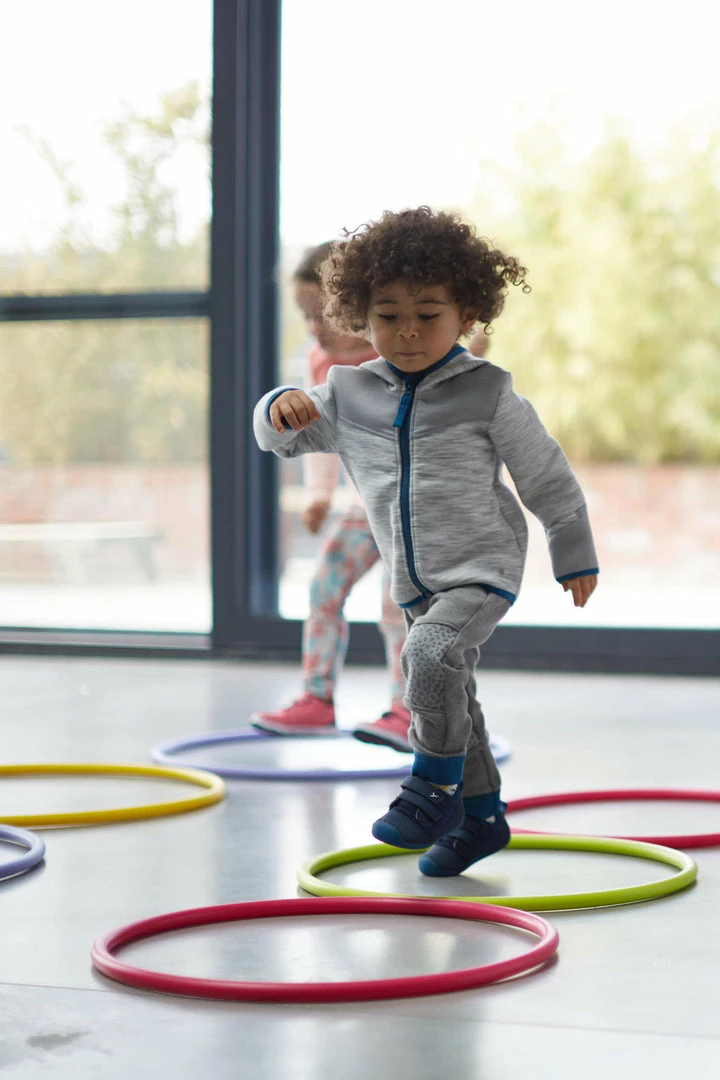 While children’s feet do not need shoes to develop, they are important for protection from the cold, damp and impacts, both indoors and out. The Domyos I LEARN shoes give children aged 1 to 2 years the protection they need, while allowing them maximum freedom of movement: flexible shoes let their feet develop naturally, and the thin, flat and flexible outsole provides a sensation of walking barefoot.
