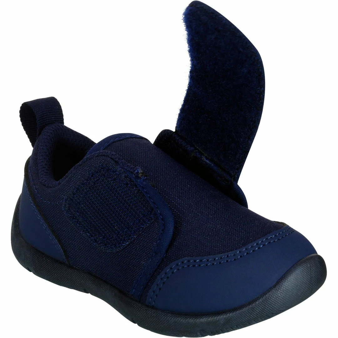 Feet don’t need shoes to develop. But shoes are important for protecting feet from the cold, damp and impacts, whether indoors or out. The Domyos I Learn shoes provide children aged 1 to 2 years with the protection they need, while leaving them as free as possible to move about. The shoes’ flexibility lets feet develop naturally, while the thin, flat, supple sole is as close as can be to walking barefoot