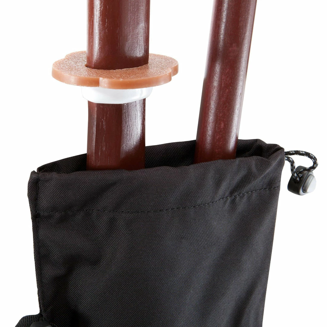 The bag is made from highly resistant polyester canvas. It is 56.7″ long. The tips are reinforced to prevent weapons from piercing the bag. It has a 13.4″ external side pocket with a rip-tab fastening. It features a clear pocket to hold your contact information. It has a 5.9″ handle and an adjustable shoulder strap. It has a drawcord fastening and clip to tighten