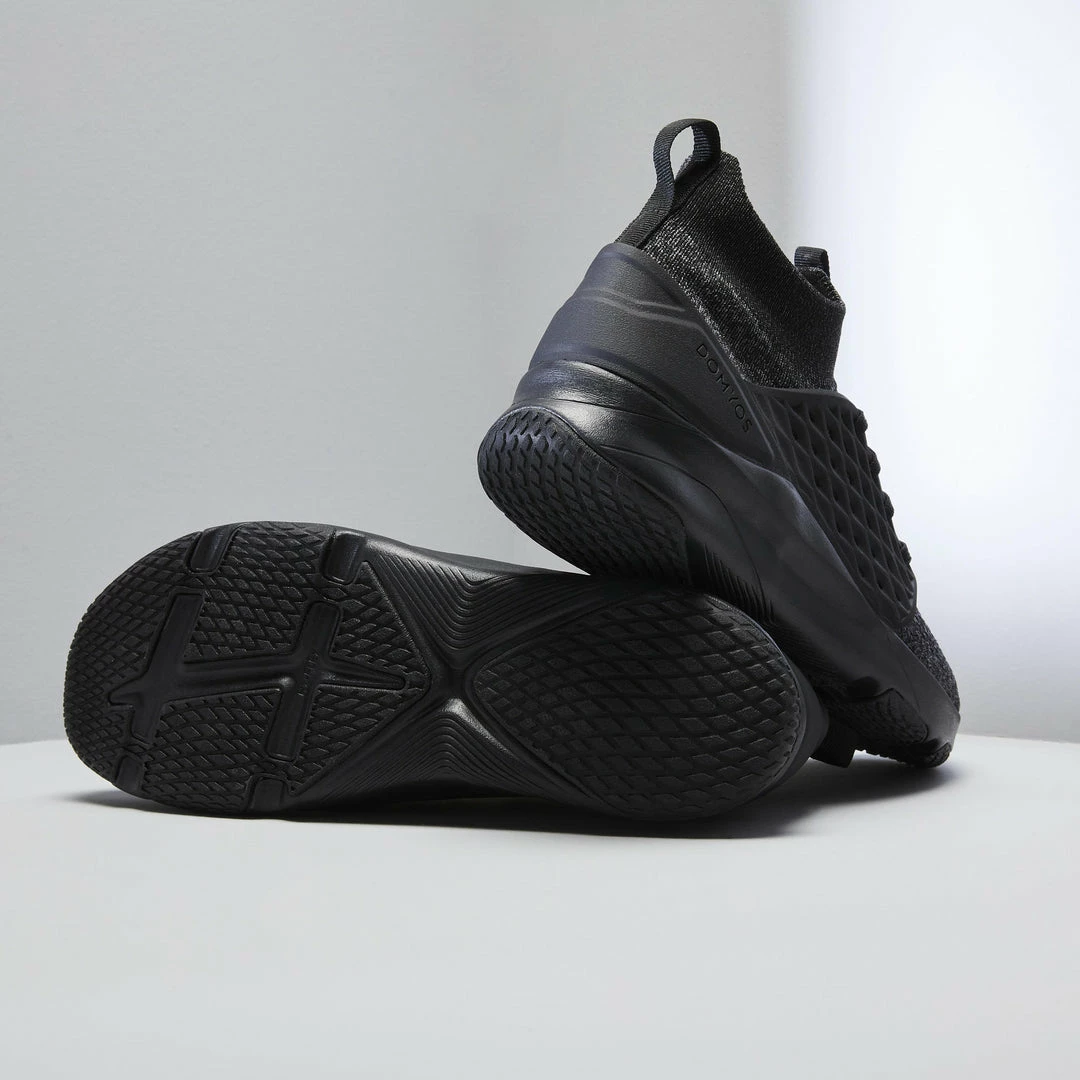 Decathlon-Knit technology completely wraps the foot for personalized, snug support. Certain threads are more rigid in strategic places and lateral reinforcements at the heel help you change directions without losing your balance.