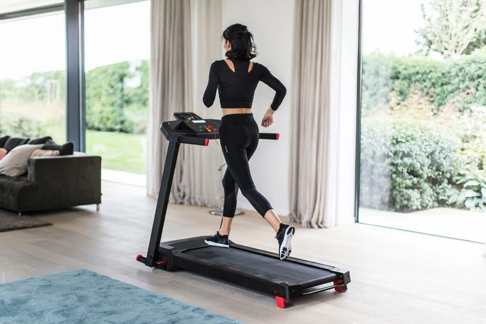 The Run 100 treadmill is equipped with foldable rear feet for a manual incline of 0% to 3%.