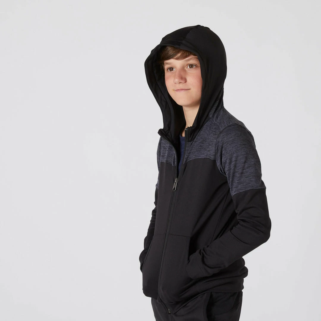 This zip-up sweatshirt with pockets is warm, breathable, and soft. The ventilation zones under the arms and in the hood provide moisture management while keeping kids warm.