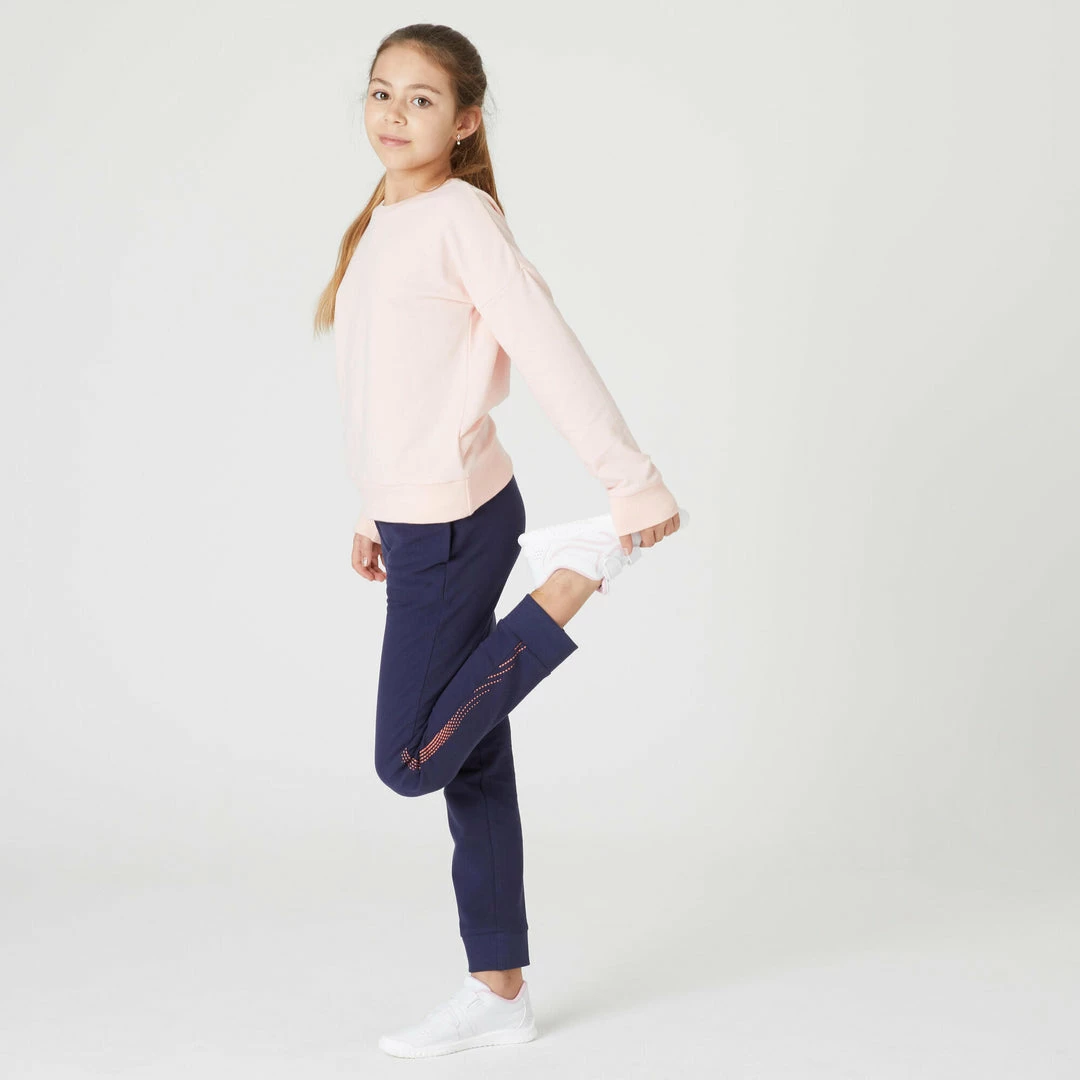 This girls’ sweatshirt is designed for staying warm before, during, and after low-intensity gym activities.