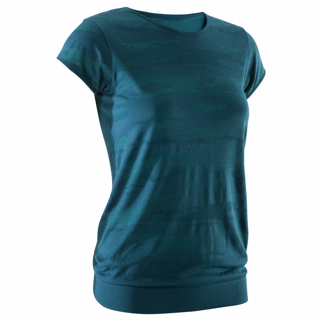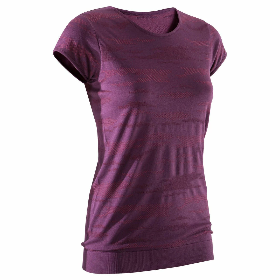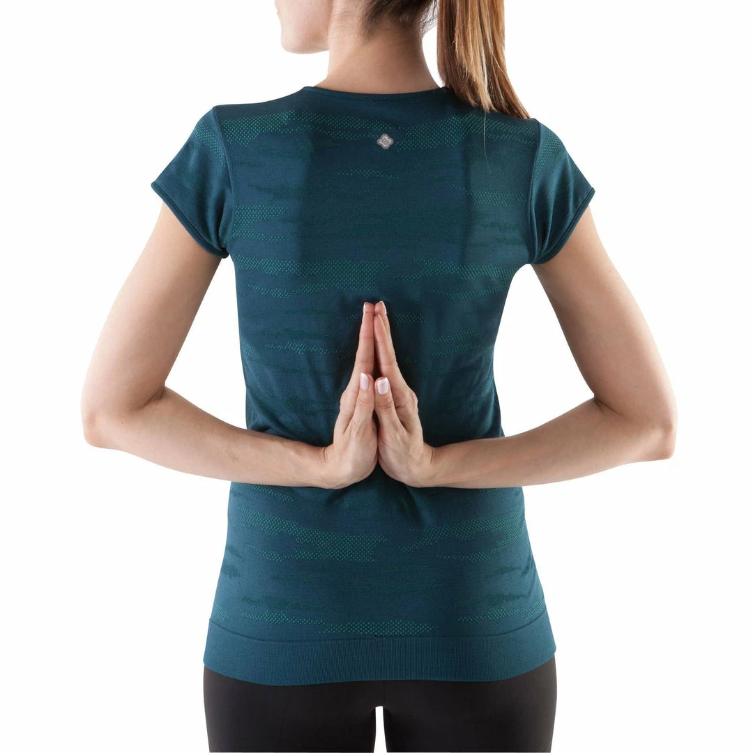 A seamless T-shirt that feels like a second skin: the flowing fabric with a subtle pattern has good hold at the hips for inverted postures. Perfect for dynamic yoga!