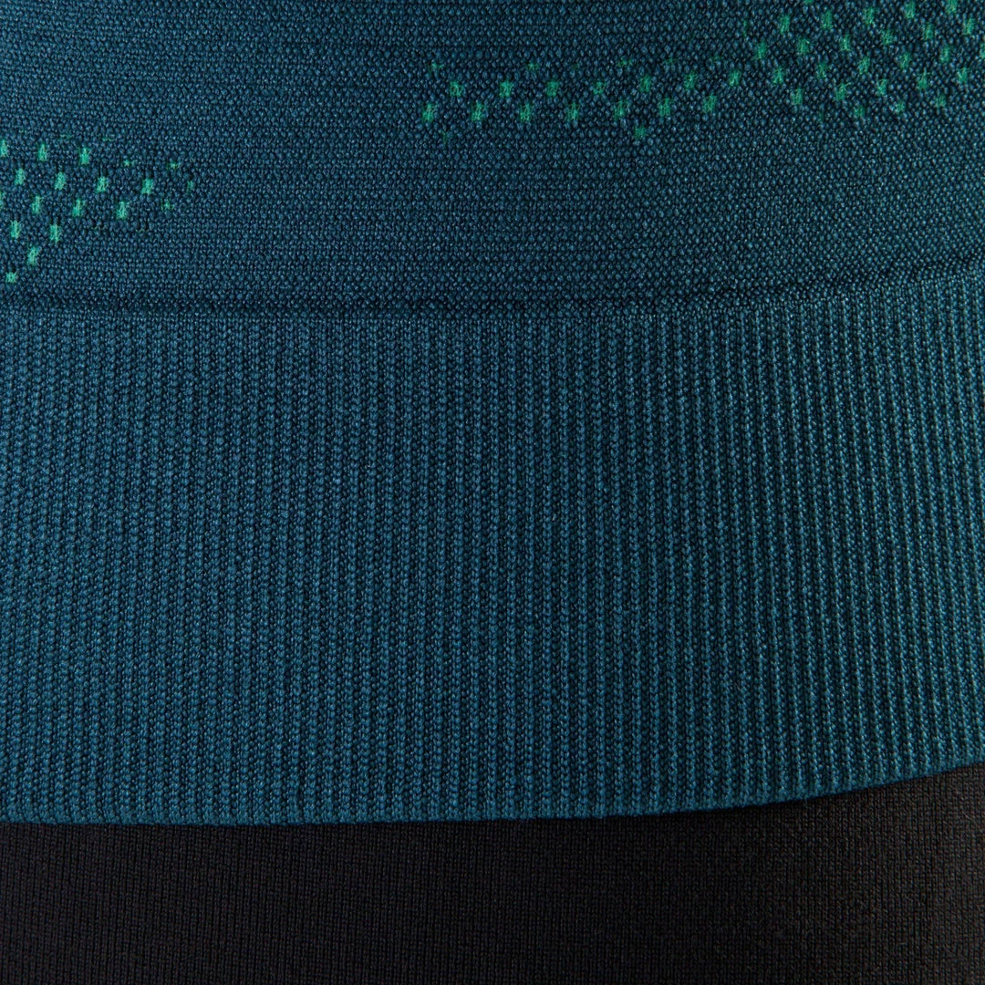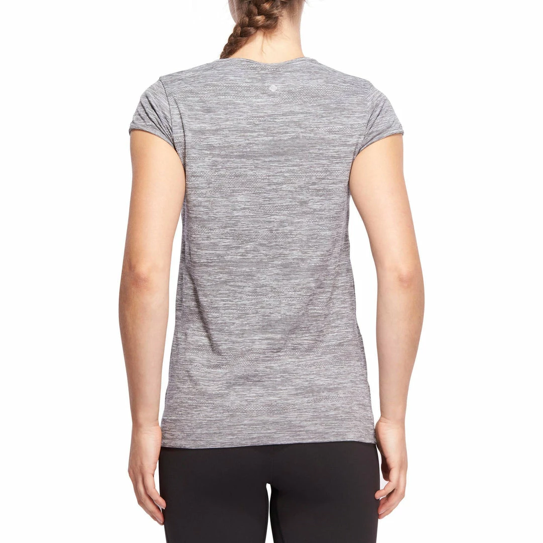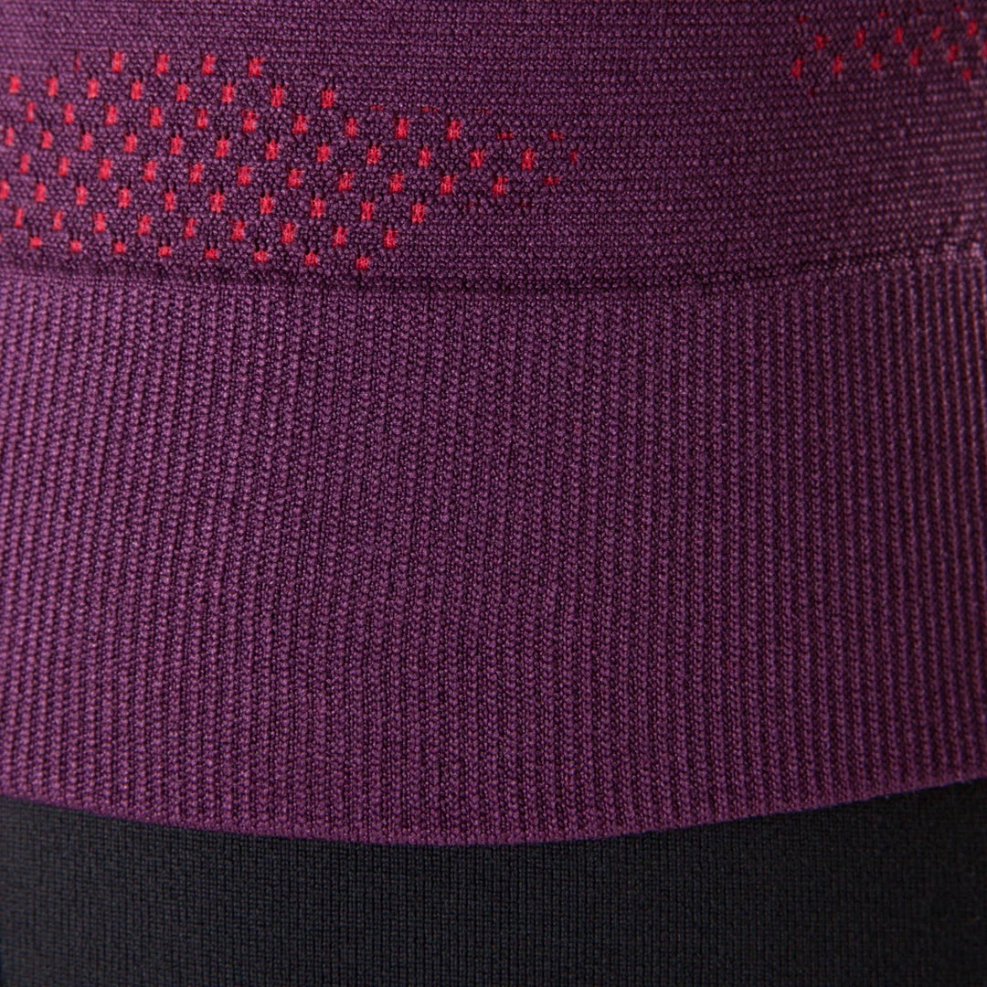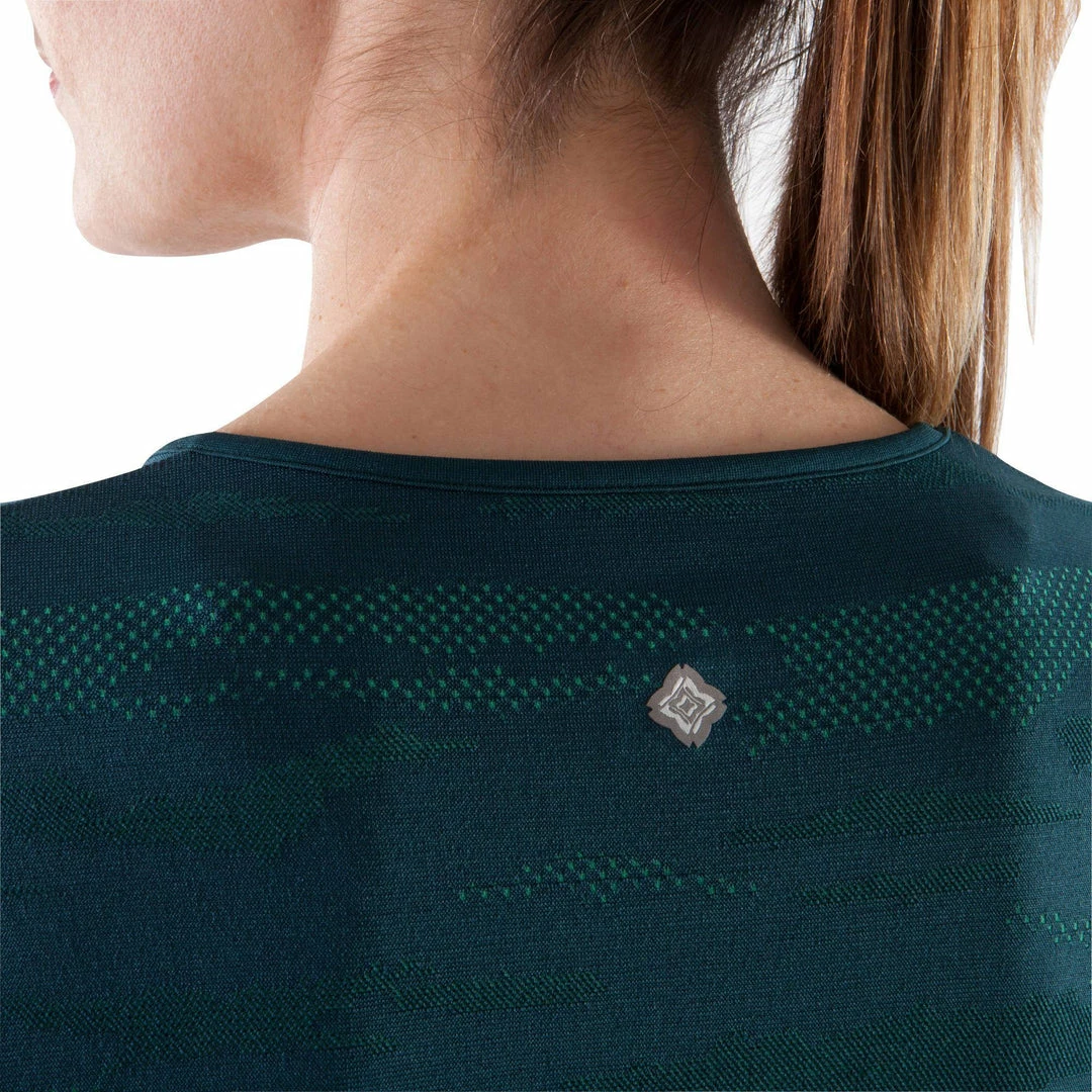 A seamless T-shirt that feels like a second skin: the flowing fabric with a subtle pattern has good hold at the hips for inverted postures. Perfect for dynamic yoga!