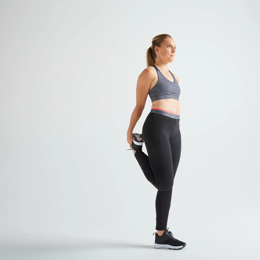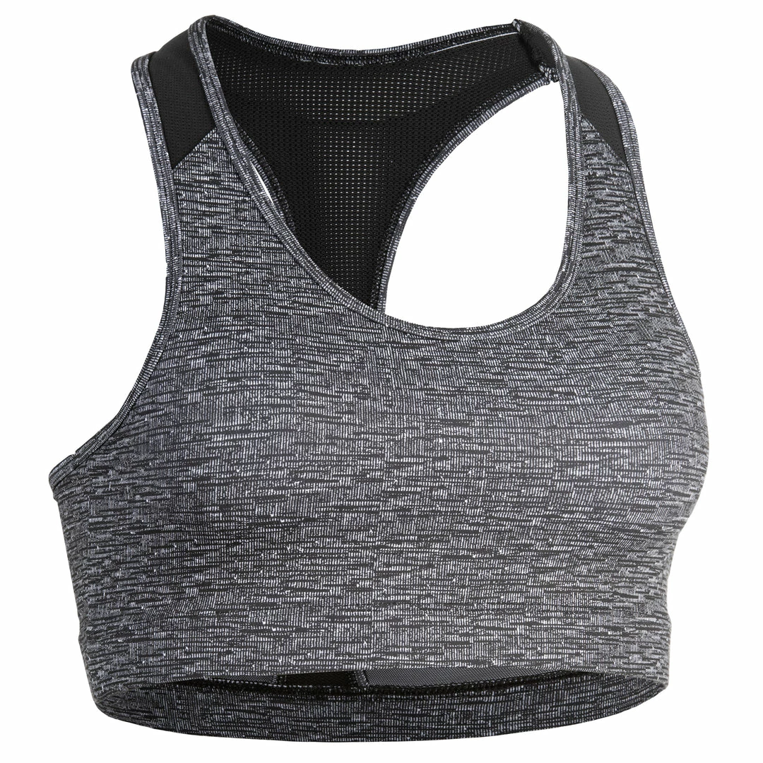 This sports bra is suitable for low-impact fitness activities (yoga, stretching, strength training, etc.). Designed for smaller busts. This model features slits to insert foam pads. *Reduces impacts by 16% compared to a regular bra when doing low-impact activities.