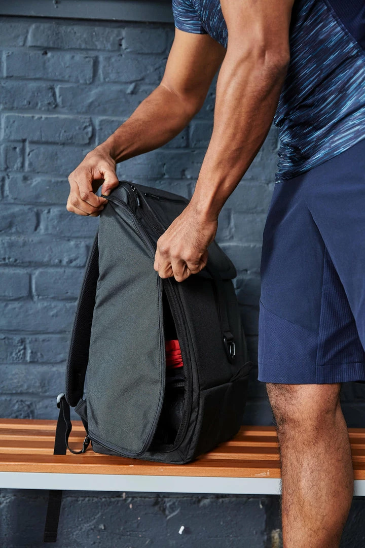 Our passionate fitness team developed this backpack for carrying your outfit. It serves as your locker, everything has its place.
