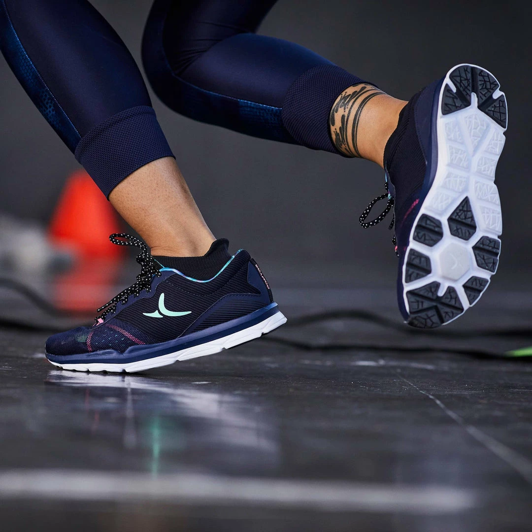 The 500 women’s cardio fitness shoe fits really well thanks to the adjustable forefoot straps, keeping you safe when performing multidirectional fitness movements