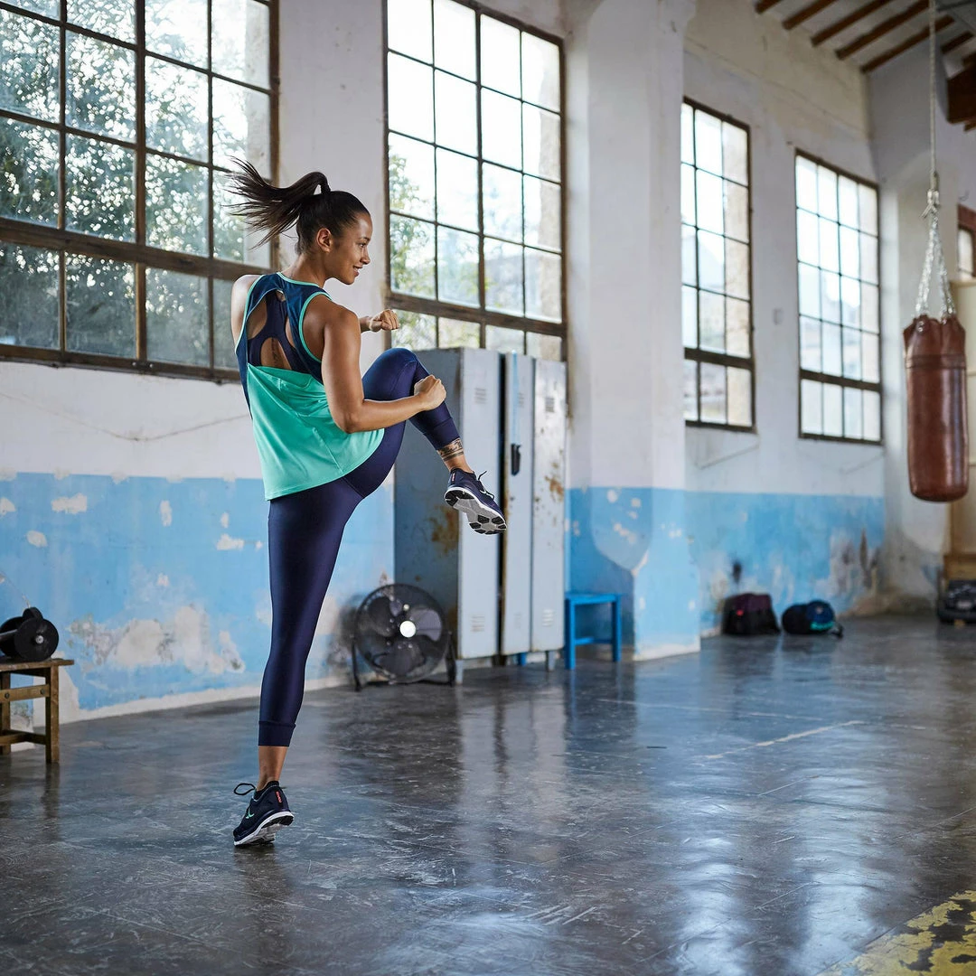 Studies carried out at our Sportslab have shown that fitness and other sports involve a whole host of different movements. Movements such as twists, skaters, tuck jumps, squats and lunges all come into play. Unlike running, which uses mainly linear movements, fitness activities involve hardly any linear movements. Our shoes are all designed to help you perform these movements without the risk of getting injured.