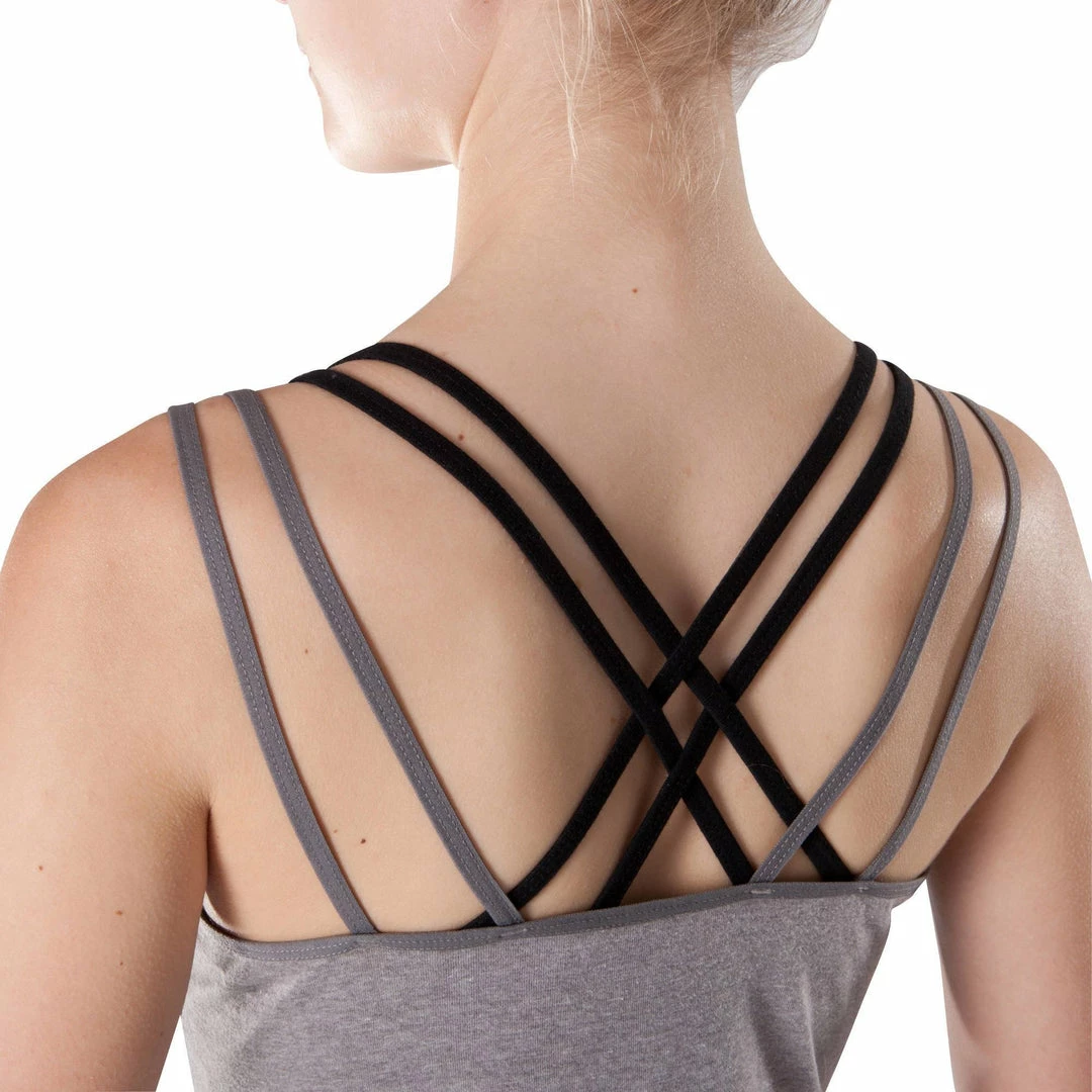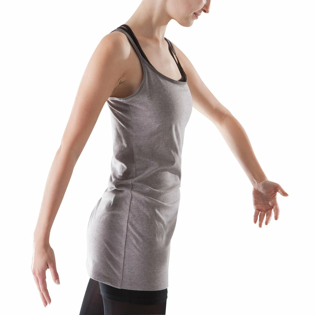 This skirted leotard with thin straps offers a good fit and comfort. It has a matching sports bra and features an elegant strap design on the back.