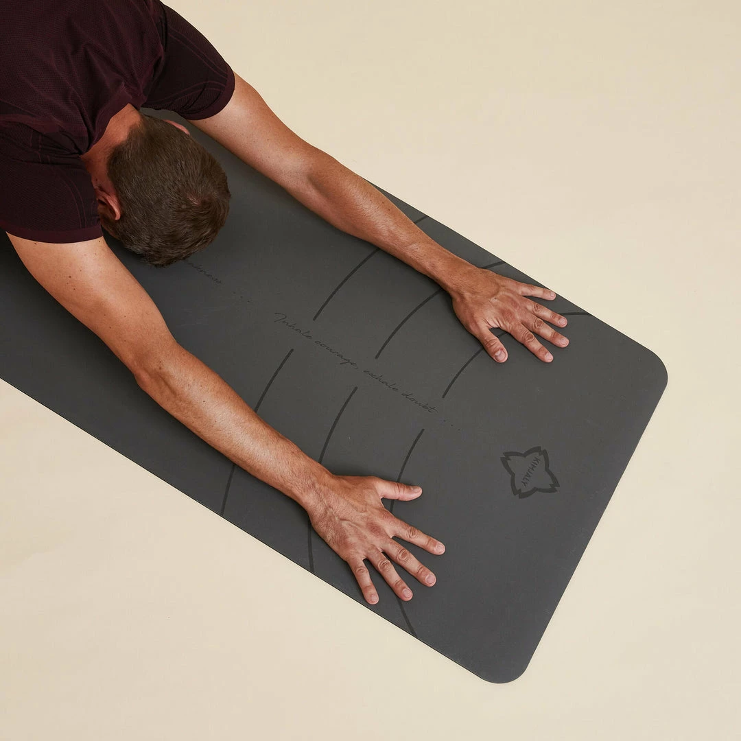 Designed for maximum grip and good comfort, with its 5 mm thickness.Perfect for dynamic yoga (Vinyasa, etc.)